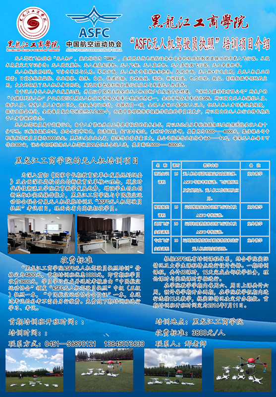为深入贯彻《国家中长期教育改革和发展规划纲要》及全面深化高校创业创新教育改革核心理念,顺应时代科技潮流及学院教育教学发展趋势,增强学生创业创新思维和实践操作能力,经过前期多次和黑龙江省模型运动协会沟通协商,我院决定与其联合开展无人机培训项目及“ASFC无人机驾驶员执照”考试项目。第一期培训课程于9月18日上午,在主楼八楼创客空间多媒体教室正式开课。来自校内外20余名学员参加了开班式。
