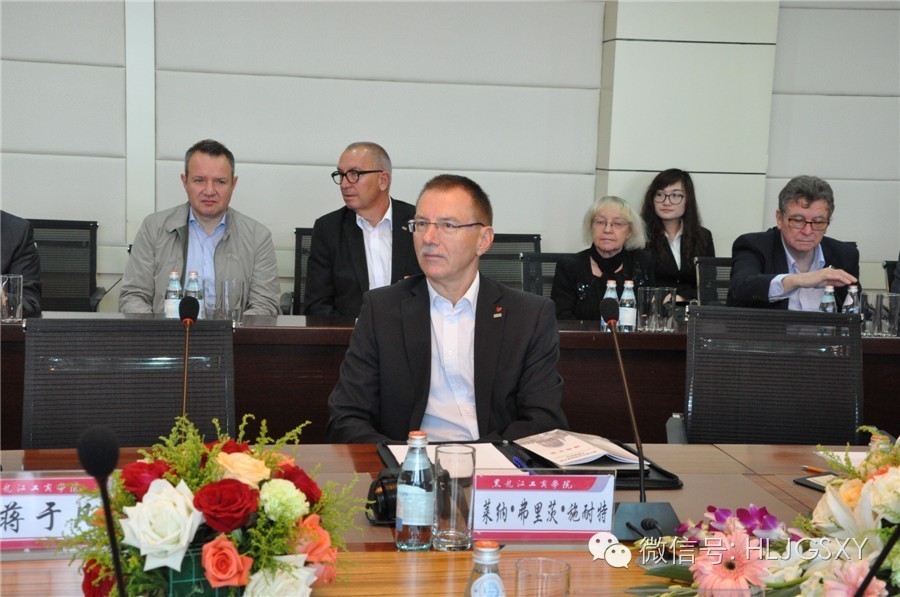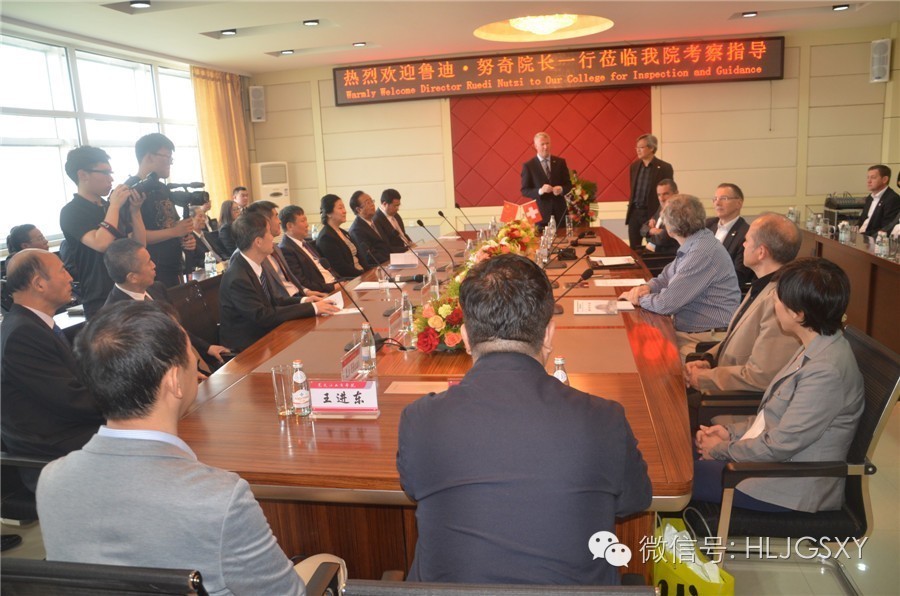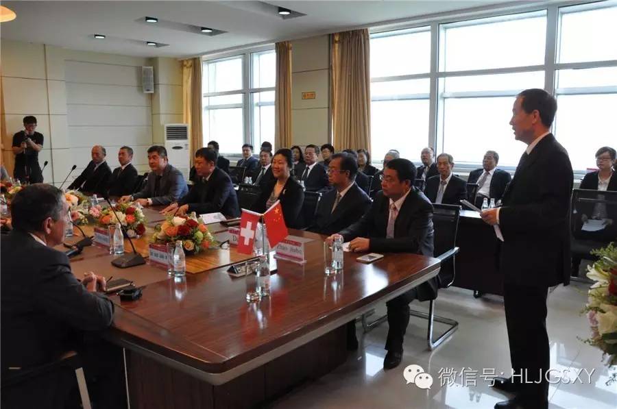 在双方互相介绍出席人员后,理事长刘来祥首先致辞。他首先对鲁迪院长率领的代表团各位成员,向光临我院的黑龙江省人社厅的各位领导和来宾,表示诚挚的欢迎和衷心的感谢,向远在欧洲中部、曾经学习和访问过的瑞士西北应用科学与艺术大学,致以深情的问候!