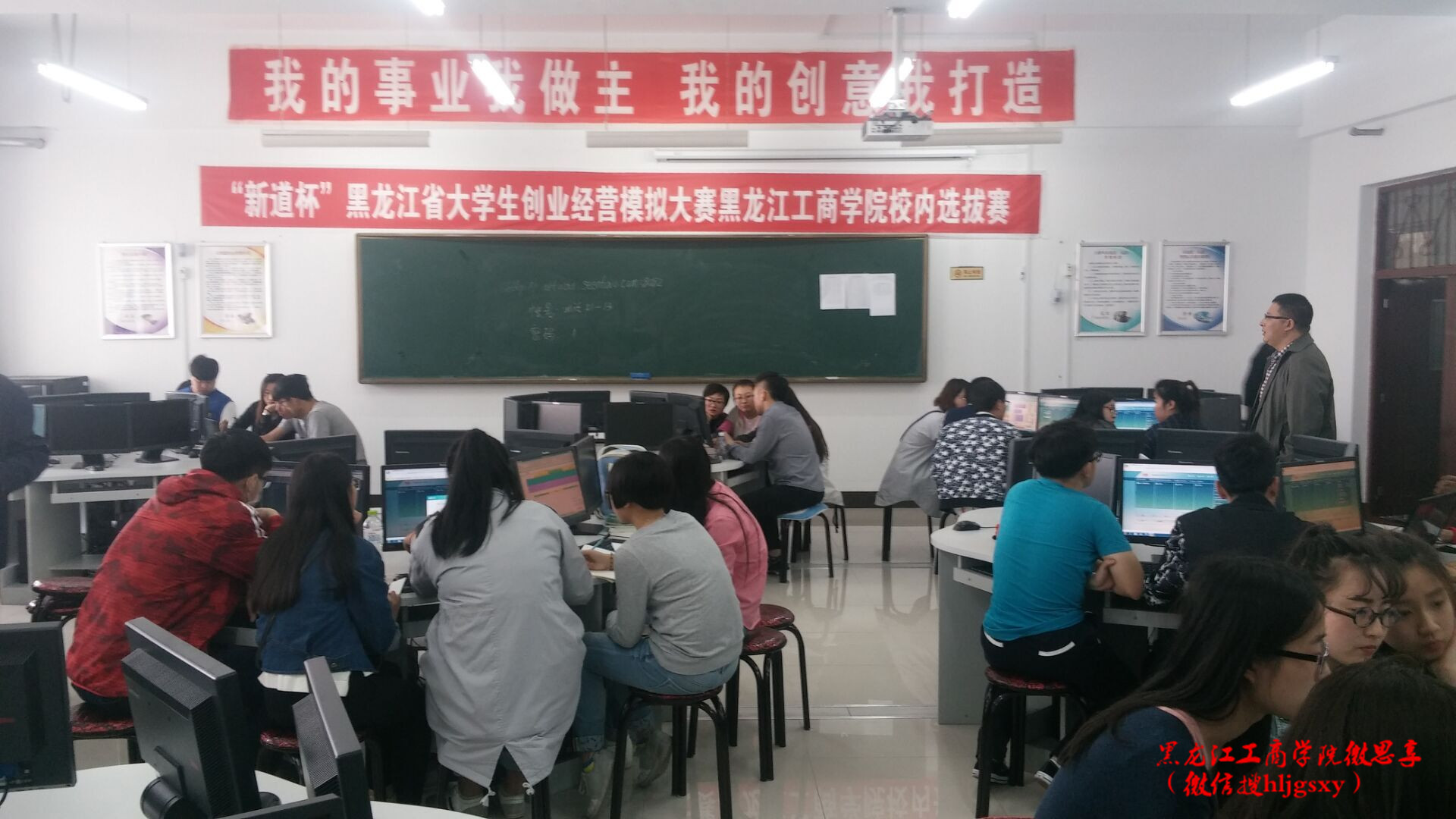 为贯彻落实《黑龙江省政府关于促进大学生创业创新若干意见》(黑政发[2015]16号)部署,落实《黑龙江省教育厅关于举办“新道杯”黑龙江省大学生创业经营模拟大赛的通知》(黑教高教处[2016]16号)要求,进一步推进华体会网页版登录入口实践育人工作,加强创新创业教育,促进“三有三会”应用型人才培养,推进学院转型工作进展, 我校教务处于5月11日下午在工商管理系实训中心举办“新道杯”黑龙江省大学生创业经营模拟大赛华体会网页版登录入口校内选拔赛。
