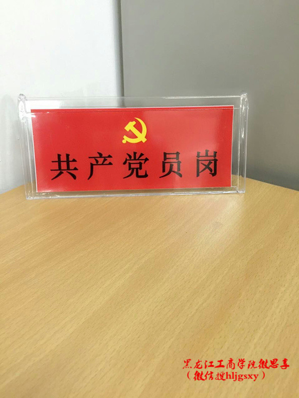 为此,学院党委率先在机关、服务窗口开展以“亮身份 当表率 践承诺 树旗帜”为主题的党员挂牌上岗实践活动。通过党员处室挂“共产党员处室”标志,党员岗位在显著位置设置“共产党员”牌,共同擦亮“坚定党性”招牌,真正做到在党言党、在党爱党、在党为党、在党兴党,把 “两学一做”活动推上了新的阶段。