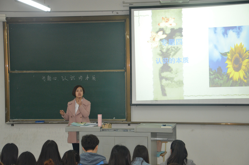 孙婷的讲授的课程是《马克思主义基本原理概论》中的 “认识的本质”一节。孙婷开篇以 “魅力哈尔滨”小短片导入,并提问“看到这些美丽景色,你们认为是谁的功劳”,学生们踊跃回答,迅速调动了学生的学习热情。讲授过程中,孙婷老师以实践活动为主线,围绕“实践的定义、实践的特点、实践的基本形式、实践的作用”等四个方面的问题,给学生作了详尽而生动的讲解。在活跃的氛围中,师生开展了良好的互动交流。