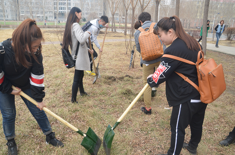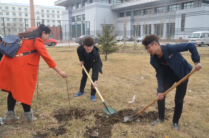 本次“绿植校园”活动得到了学院后勤部门的大力支持,不仅推荐合适的校园场地,提供锹铲、水桶等设备,还耐心指导如何挖坑、填土、浇水,如何做好树苗的养护。本次栽种的果树苗为寒地沙果和寒地樱桃,树苗来自于东北农业大学果树实验基地,均为抗旱、抗寒、易栽种、易成果、少病虫害的寒地优质果树苗。