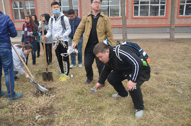 4月12日中午,“绿植校园”活动正式启动。三个部门的学生记者早早来到预定场地(食堂和体育馆之间),开始了第一批植树活动。根据场地沙土土质特性及场地面积,本次共栽种6颗寒地樱桃树。同学们不怕脏,不怕累,挖坑、插苗、培土、浇水,虽然还略显生疏,大家齐心协力,在短短的三十分钟内,六颗樱桃树苗成功根植于校园的沃土中。随后,学生记者又开展了清垃圾活动,清除了场地内的垃圾物品和废弃树杈。
