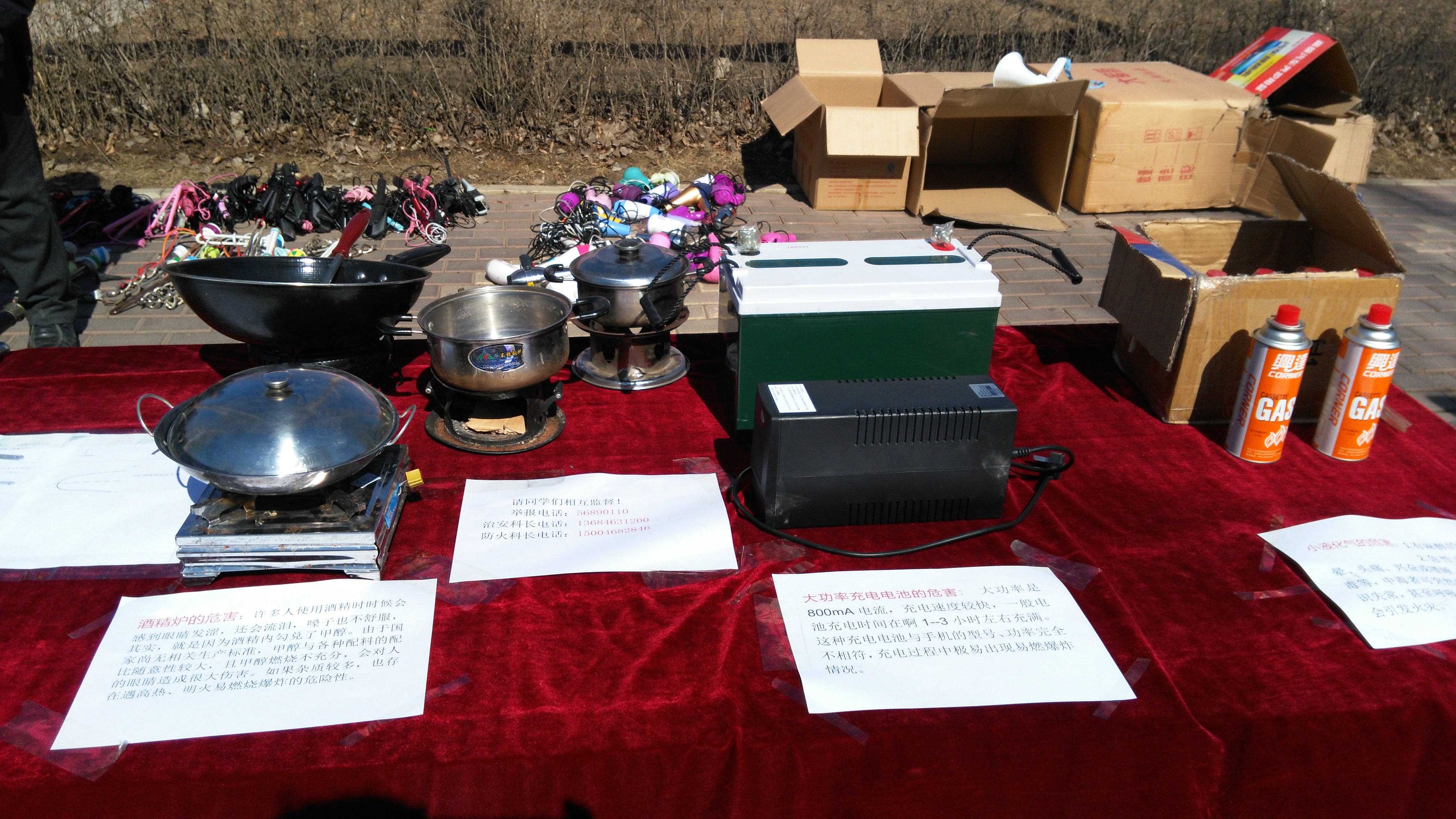 3月24日中午,由我院学生处、保卫处共同举办的校园安全活动月暨违规电器展活动在我校运动场隆重举行。