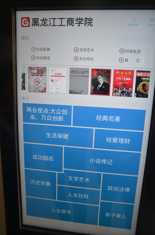 歌德电子借阅机位于图书馆四楼期刊阅览室内。