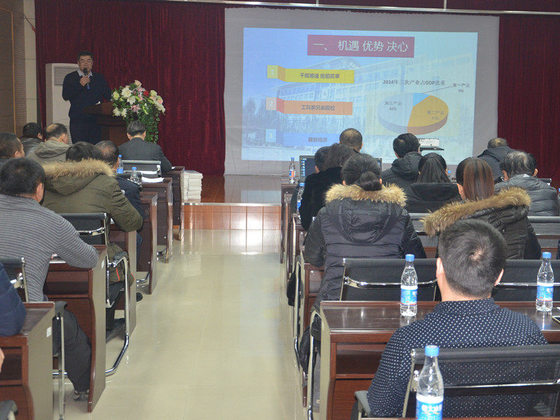在学院胜利召开第一次党代会、第一届一次“双代会”之际,应学院院长、党委书记宋有的邀请,学院理事长、哈尔滨祥阁房地产开发有限公司董事长刘来祥博士,于12月 30日上午,在六楼会议作了“抓住机遇 开拓进取 全力推进学院转型发展”专题培训,学院主要党政领导出席会议,各系部办负责人、副科级以上行政干部、学工办主任、教研室主任聆听了培训。培训会由宋有主持。