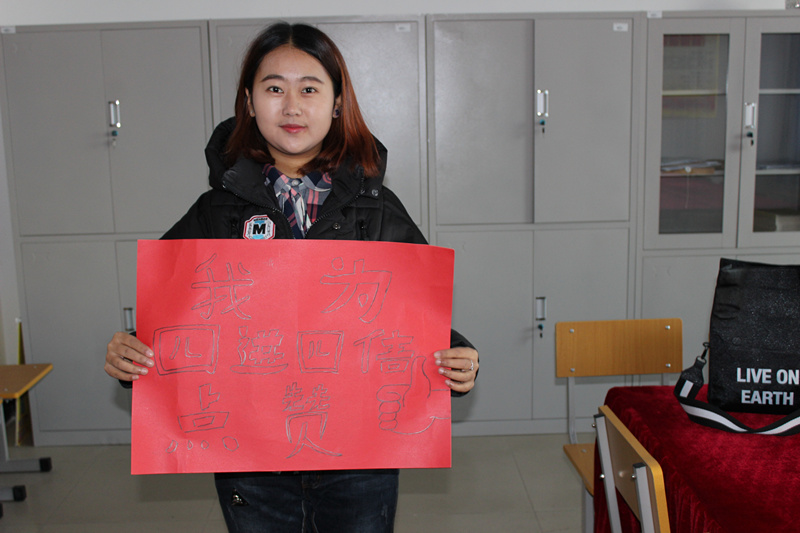卡纸上写出自己学习践行“四进四信”的决心,并号召更多的同学参与到践行“四进四信”的活动中来。