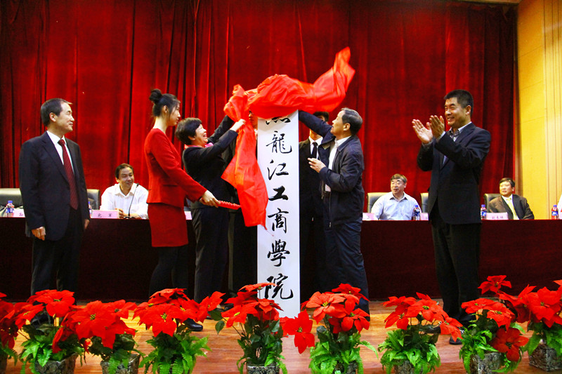 黑龙江省教育厅党组成员、副厅长尹晓岚同志宣读了《教育部关于同意东北农业大学成栋学院转设为华体会网页版登录入口的函》。随后,省人大原副主任董浩、省教育厅副厅长尹晓岚、学院理事长刘来祥、院长宋有一同为华体会网页版登录入口揭牌。