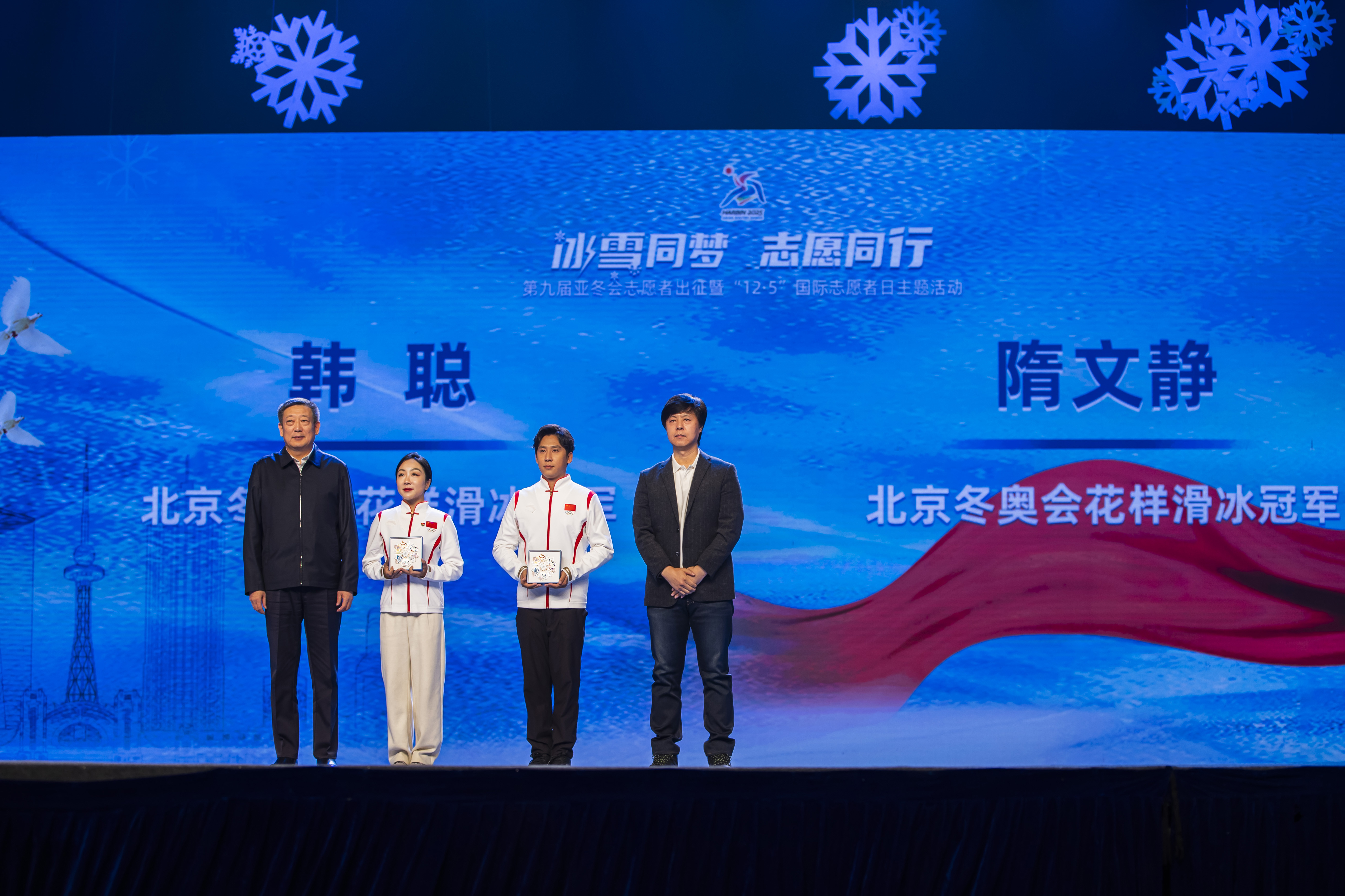 12月5日,“冰雪同梦 志愿同行”第九届亚冬会志愿者出征暨“12·5”国际志愿者日主场活动在哈尔滨市举行。活动宣布2022年北京冬奥会花样滑冰双人滑冠军韩聪、隋文静担任第九届亚冬会志愿服务公益形象大使。我校教师邓国梁教授作为亚冬会志愿者徽章《心心相映》设计者,受邀参会并向韩聪、隋文静赠送徽章。