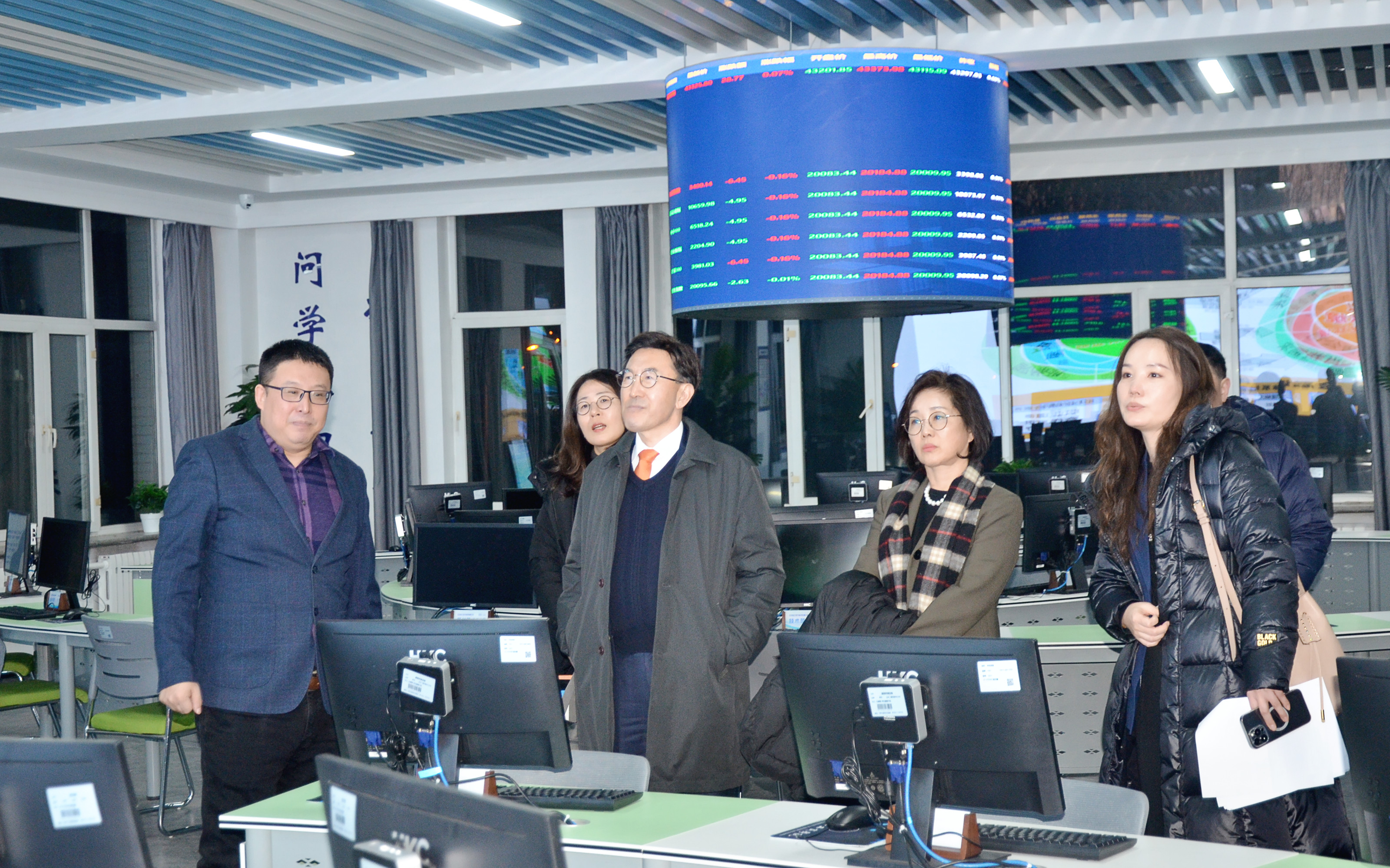 李昇勋一行在校期间,参观了教育部“新金融智慧学习工场”。副校长孙智慧、韩国世翰大学副校长崔美顺和两校国际交流部门、我校相关二级学院负责人参加上述活动。