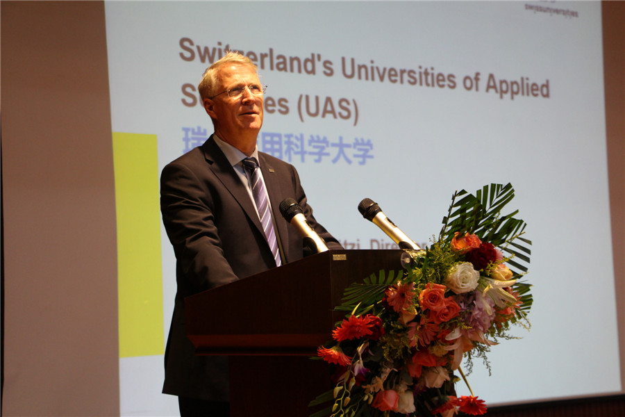 (瑞士西北应用科学与艺术大学商学院鲁迪•努奇院长为师生作报告)