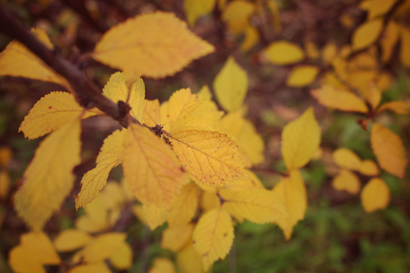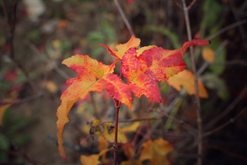 “隔断红尘三十里,白云红叶两悠悠”。提笔之时,秋风仍徜徉,绯红减退,所到之处,北国粗犷,灿烂尽显。