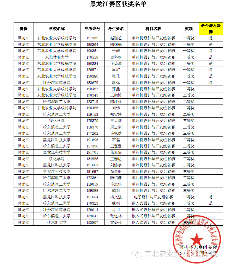 4月11日,第六届蓝桥杯全国软件和信息技术专业人才大赛个人赛黑龙江省赛圆满成功举办。我院电子系代表学院参加了此次比赛中的单片机设计与开发组环节,并取得了优异的成绩,狂揽6个一等奖(赵胜超、陈国栋、于潇、佟禹澔、周游、程佳)、3个二等奖(王鹏博、那鑫)。赵胜超、陈国栋、于潇、佟禹澔、周游、程佳六位同学也代表我省进入了全国总决赛。作为赛点之一,我院也获得我省唯一的优秀院校组织奖。