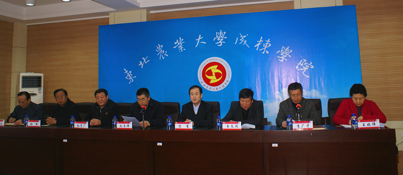3月12日,学院新任院长宋有同志任职宣布大会在主楼六楼会议室召开。 学院理事长刘来祥在会上首先宣读了理事会关于学校主要领导干部任免职的决定:经东北农业大学成栋学院理事会第三届第四次会议决定,同意孙孚广院长提出的因年龄和身体原因辞去院长的申请,由理事长刘来祥提名,同意宋有同志接任学院院长。在老院长孙孚广发表了深情而又诚挚的离职讲话后,宋有院长作就职讲话。