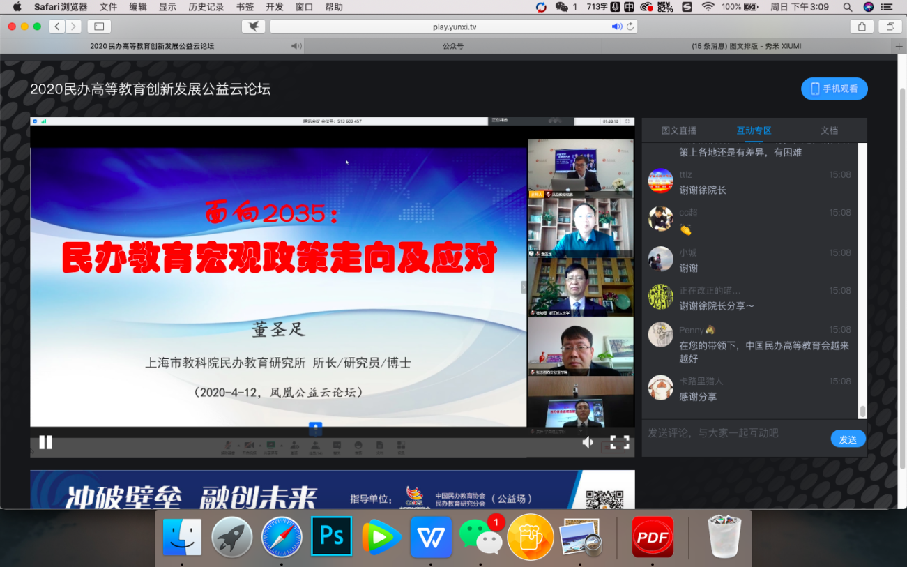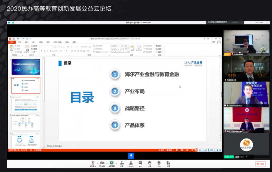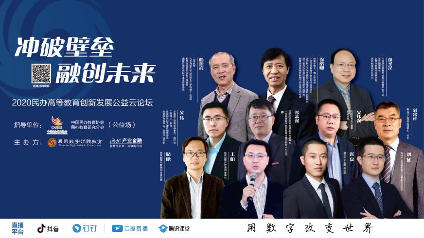 4月12日,由凤凰数字媒体产业教育集团和海尔产业金融联合主办的“冲破壁垒、融创未来”——2020民办高等教育创新发展公益云论坛在线上成功举行。5位国内高等教育领域权威专家,150余所民办高校领导相聚云端,共商共享克服疫情危机路径良策,助力民办高等教育创新发展。