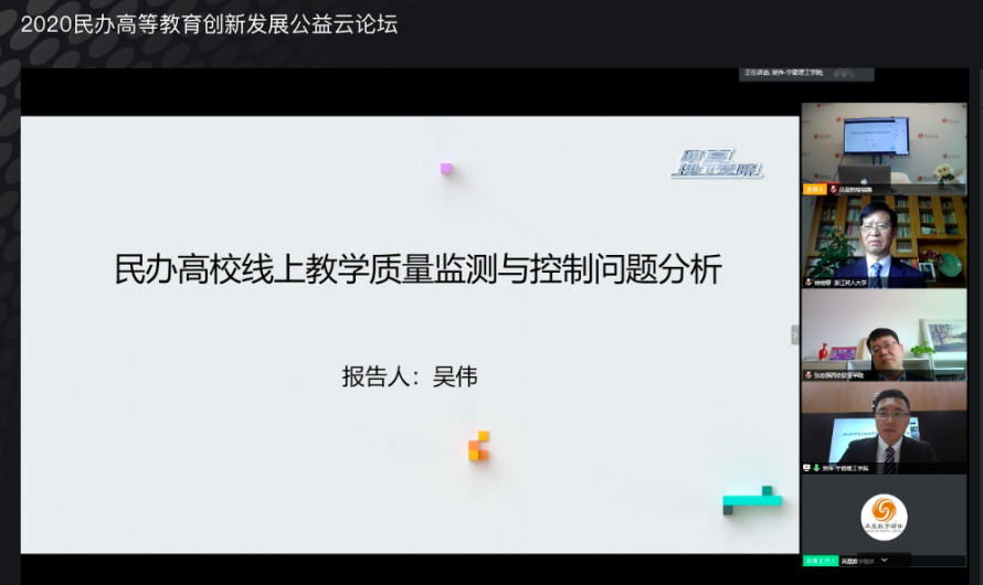 宁夏理工学院副校长、教育部合格评估与审核评估专家吴伟在题为《民办高校线上教学质量监测与控制问题分析》的发言中,通过线上教学整体情况的介绍与分析,分享了保障民办高校在线教学质量的有益经验,为进一步提升民办高等教育教学质量提供了有效助力。
