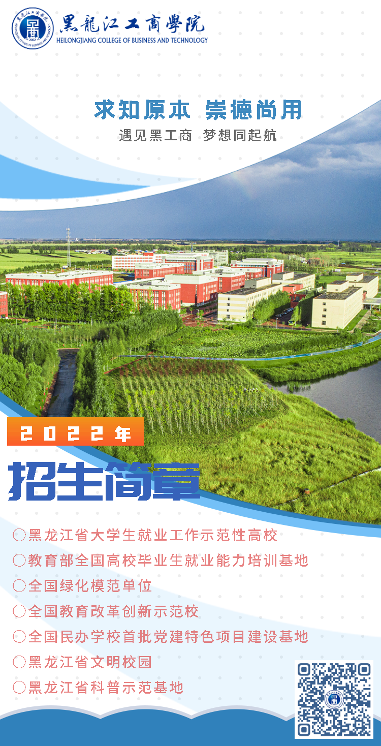 黑工商是开放包容、朝气蓬勃的,打破专业壁垒,融合传统文化和创新思维,有传统教学、线上教学和智慧课堂等第一课堂;有常年开展的科技创新、艺术文化、志愿服务、校企校地社会实践,引领学子志存高远,尽情绽放青春,在参与中提升能力,在竞争中唤醒潜能,在合作中创造未来!