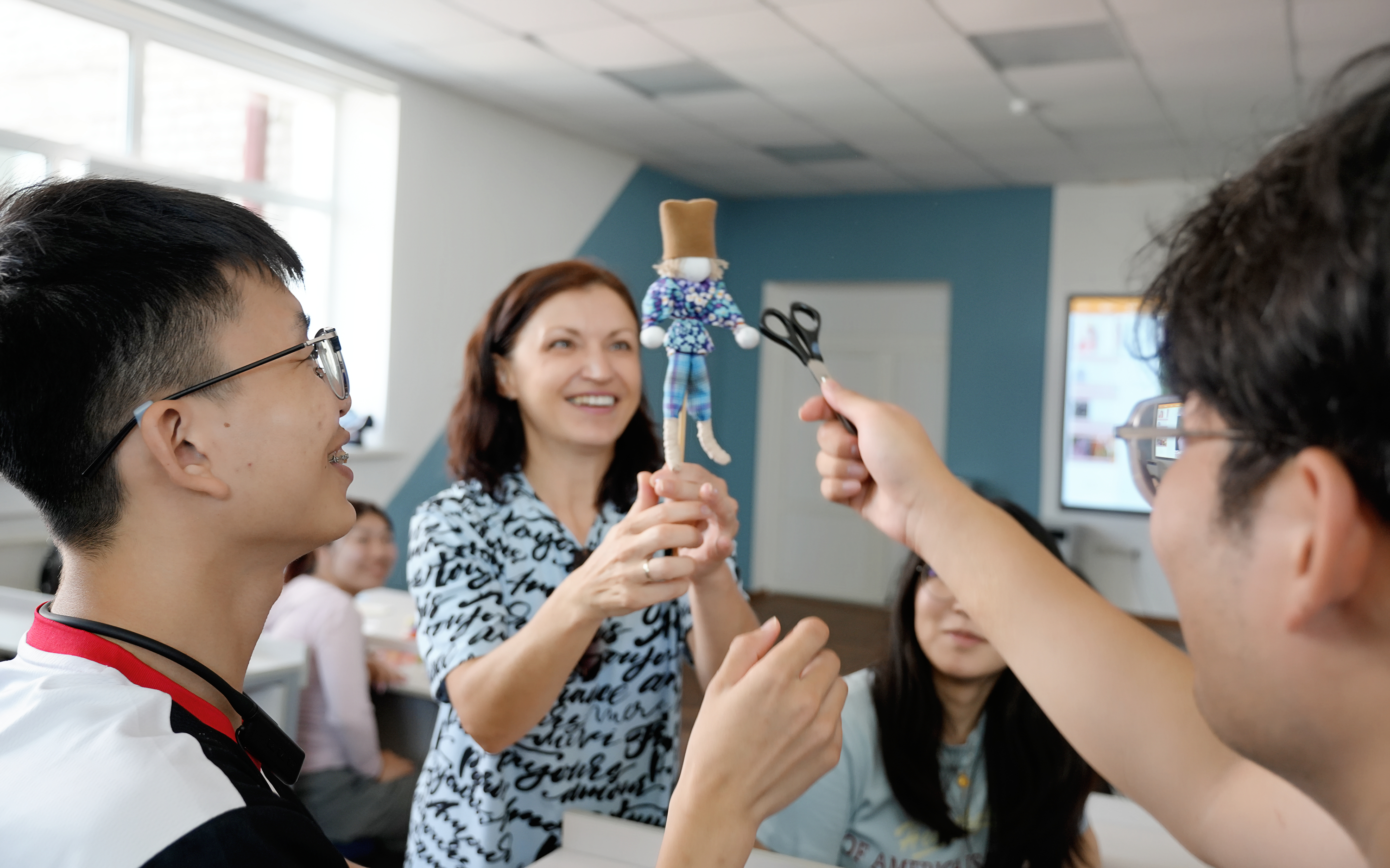 在布师大精心准备的大师音乐课上,同学们跟随舞蹈老师和歌唱老师学习极具俄罗斯传统艺术表现形式的民间舞蹈《勺子舞》;在语言认知课上,通过游戏互动、学习俄语绕口令等形式,了解俄语发音特点,感受不一样的教学方式;参观教学楼、体育馆和各类实训场所,详细了解大学课程安排,分享交流学习经验。