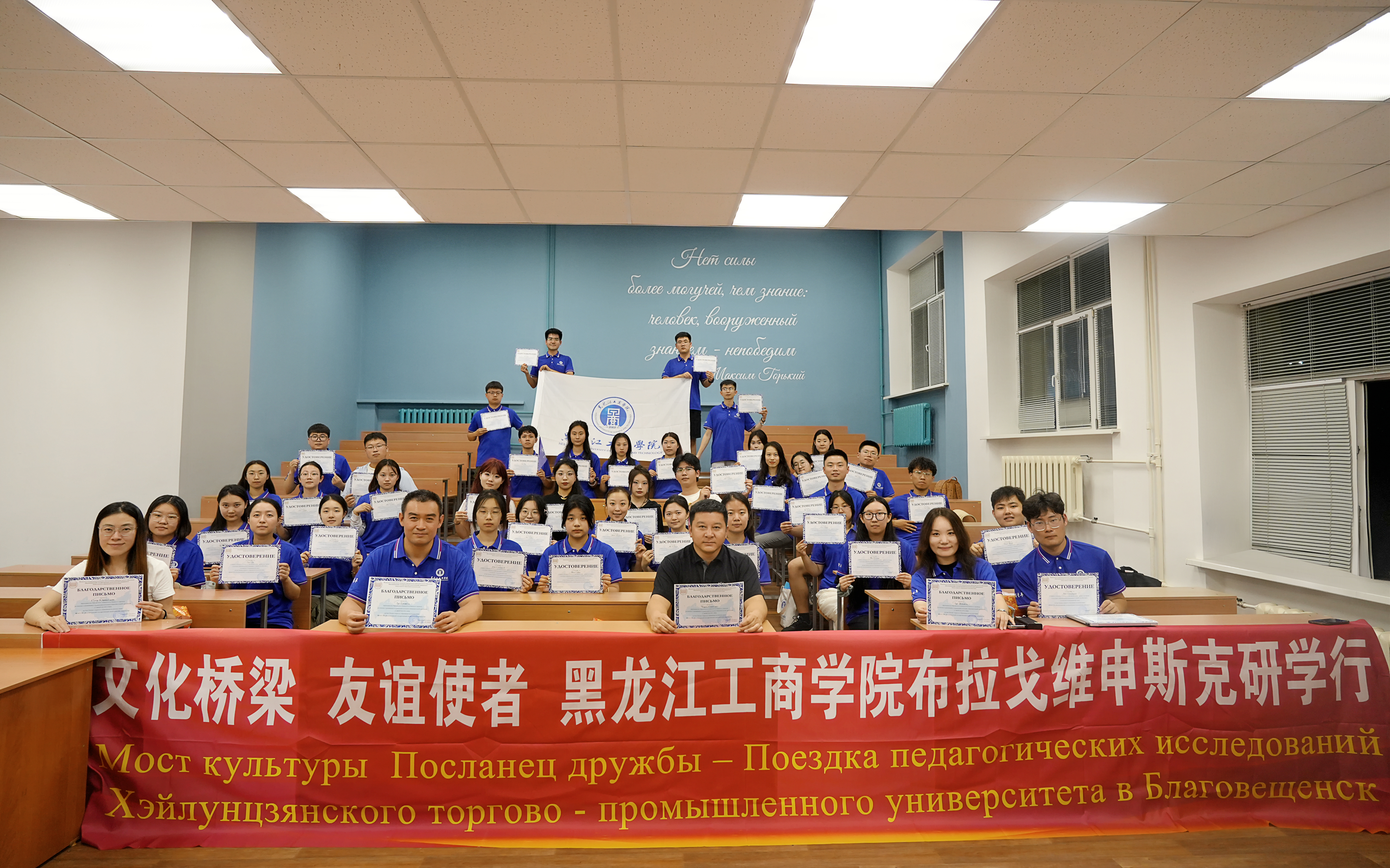 8月10日至16日,我校首批海外研学实践团45名师生(5名指导教师)走出国门,前往俄罗斯布拉戈维申斯克国立师范大学(以下简称布师大),开展为期一周的暑期海外研学实践。在俄期间,先后研学在布师大、参观布市著名博物(纪念)馆和景观建筑、体验俄罗斯传统文化民俗,拓宽专业视野,促进文化交流互鉴,提高跨国交流能力。出境前,研学实践团还在黑河市,参观了瑷珲历史陈列馆、瑷珲知青博物馆、黑龙江大桥、旅俄华侨纪念馆等地,感受大美龙江独特魅力。