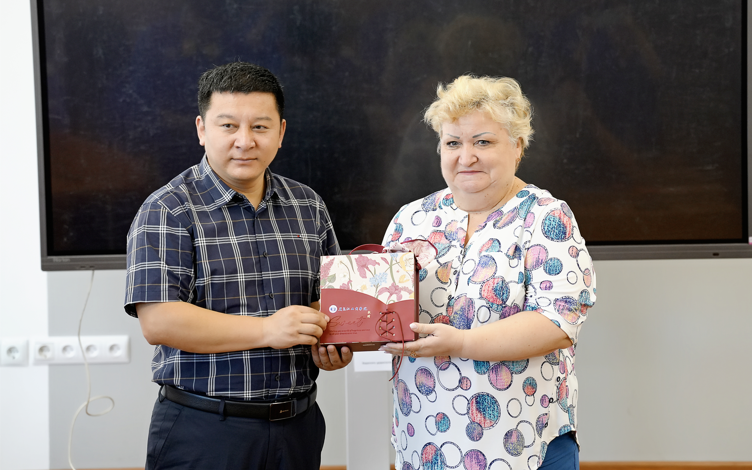 注:张幸刚和李国润向布拉戈维申斯克国立师范大学赠送礼品
