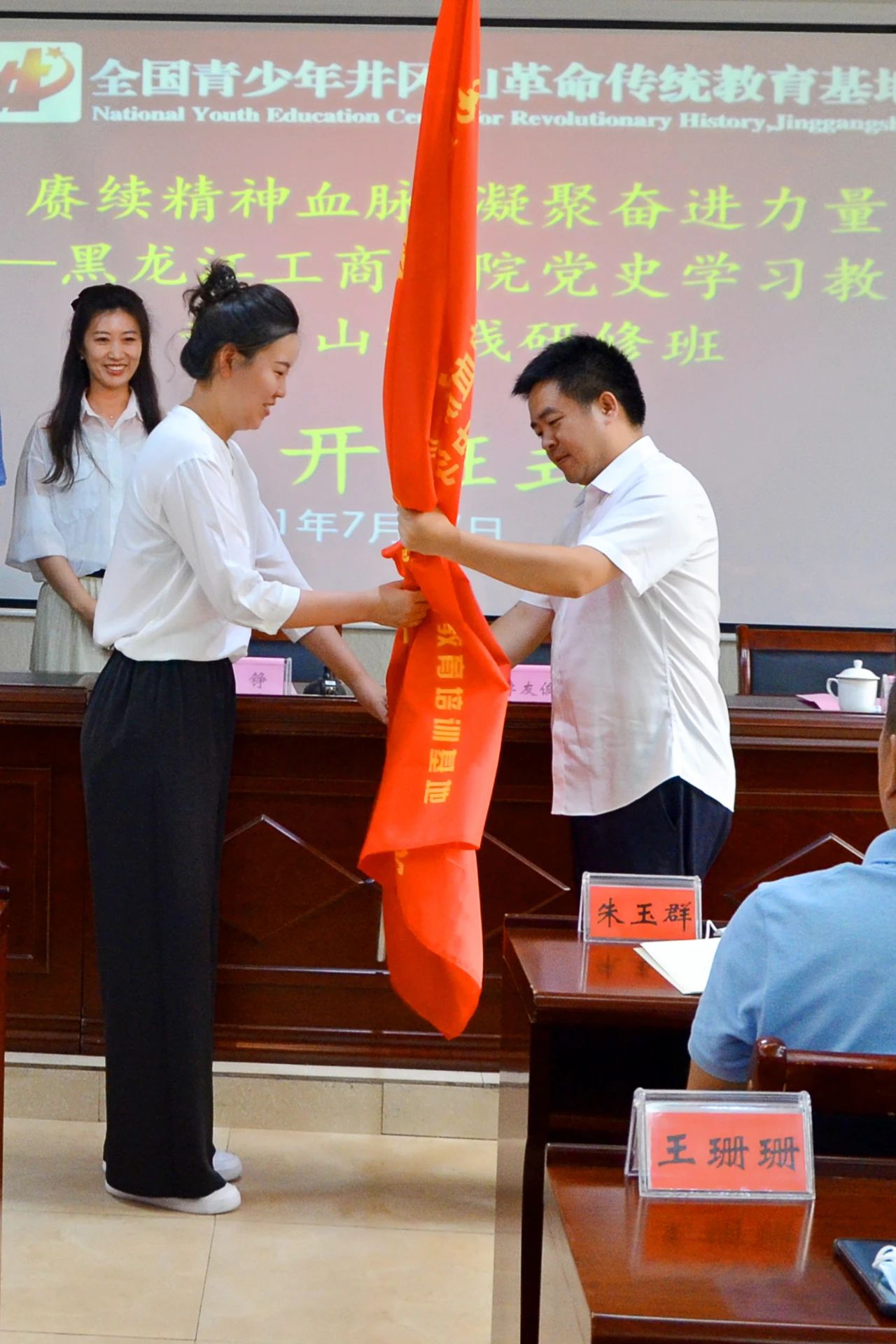 会上, 李友俊为培训班授旗,王陶陶宣读了《学员纪律》。来自学校各单位的党务和思政干部、思政课教师和“青马工程”学生骨干等共59名学员参加了开班式。据悉,在为期4天的培训中,培训班将充分用好井冈山红色资源,通过专题讲座、现场教学、情景体验和研讨交流等相结合的方式,接受党史学习教育和理想信念教育,弘扬光荣传统、赓续红色血脉。