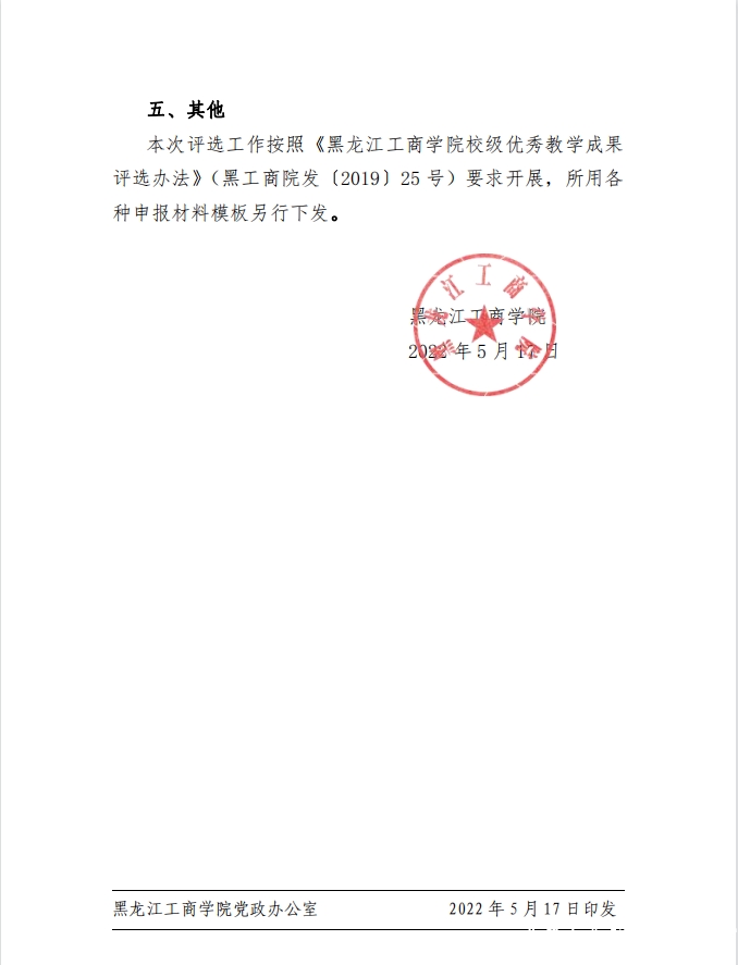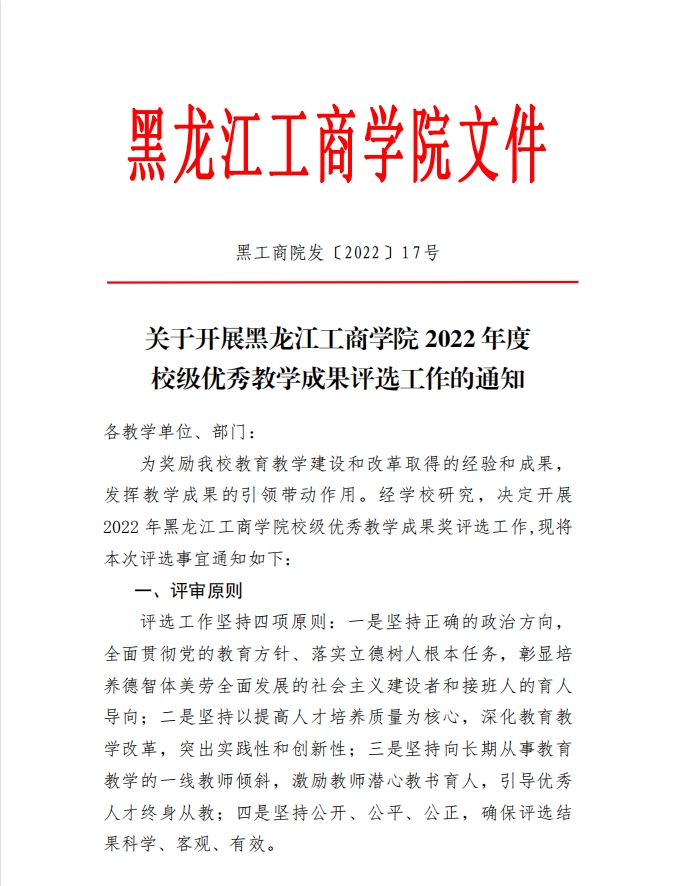 关于公布黑龙见工商学院2022年优秀教学成果评审结果的通知