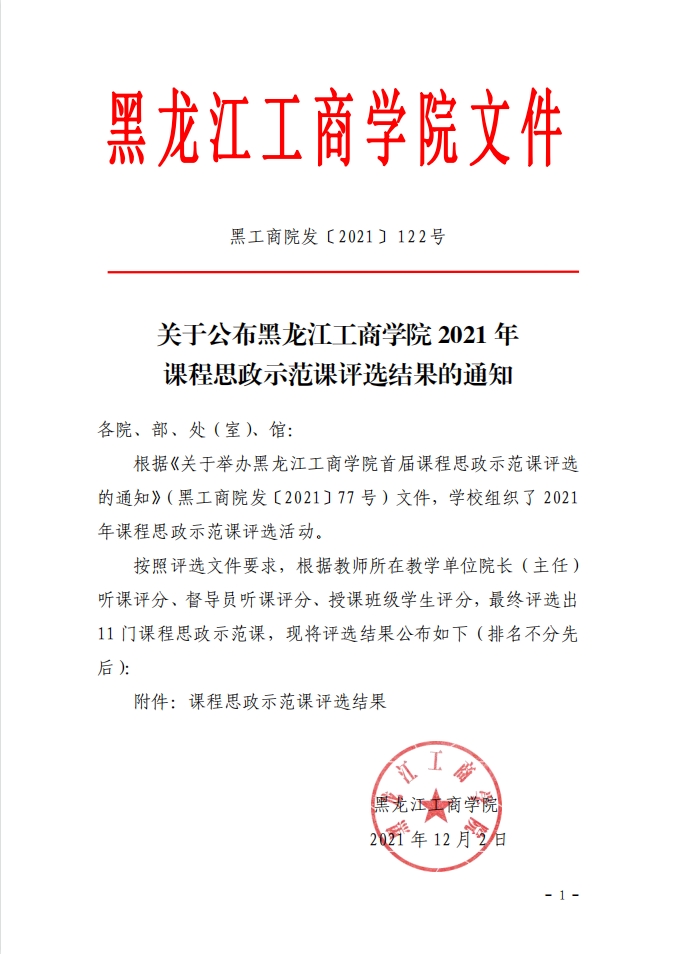 关于公布华体会网页版登录入口2021年课程思政示范课评选结果的通知