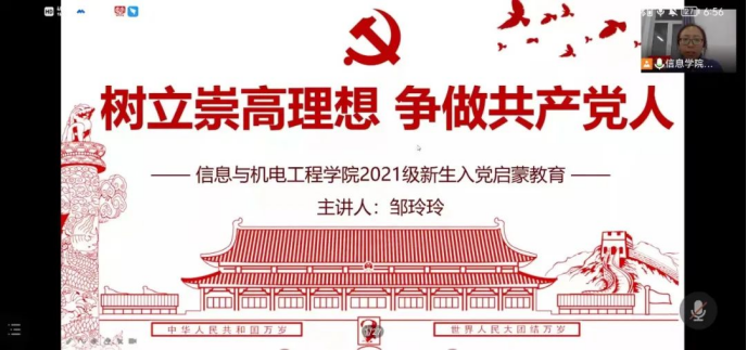 为进一步加强2021级新生的思想政治教育,增进对中国共产党基本知识的理解和掌握,引导2021级学生积极主动向党组织靠拢,逐步树立起自愿为共产主义事业奋斗终身的信念,帮助新生树立正确的人生观、价值观和世界观,信息与机电工程学院特召开此次入党启蒙教育大会。本次信息与机电工程学院2021级新生入党启蒙教育大会由学院党总支书记邹玲玲主讲,700余名2021级全体新生参与。