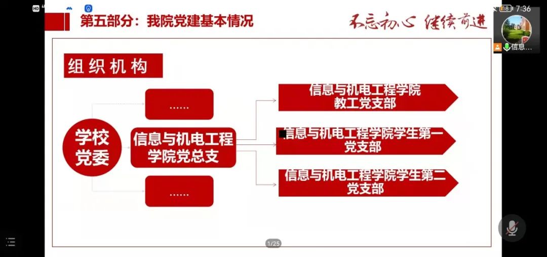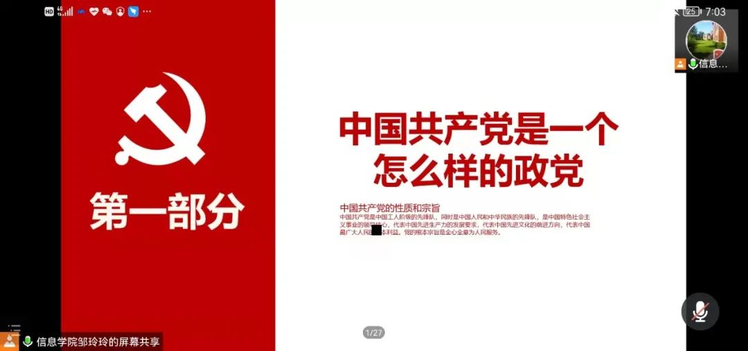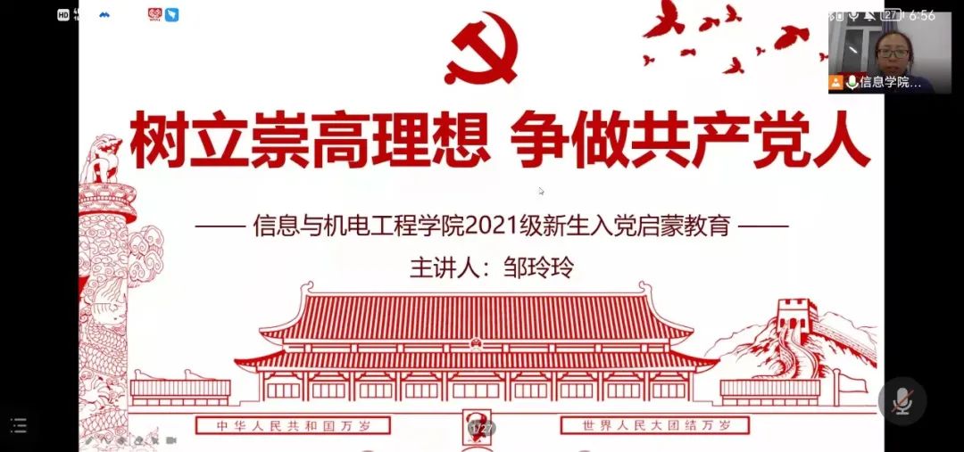 图为信息与机电工程学院学院党总支书记邹玲玲线上为2021级新生做入党启蒙教育